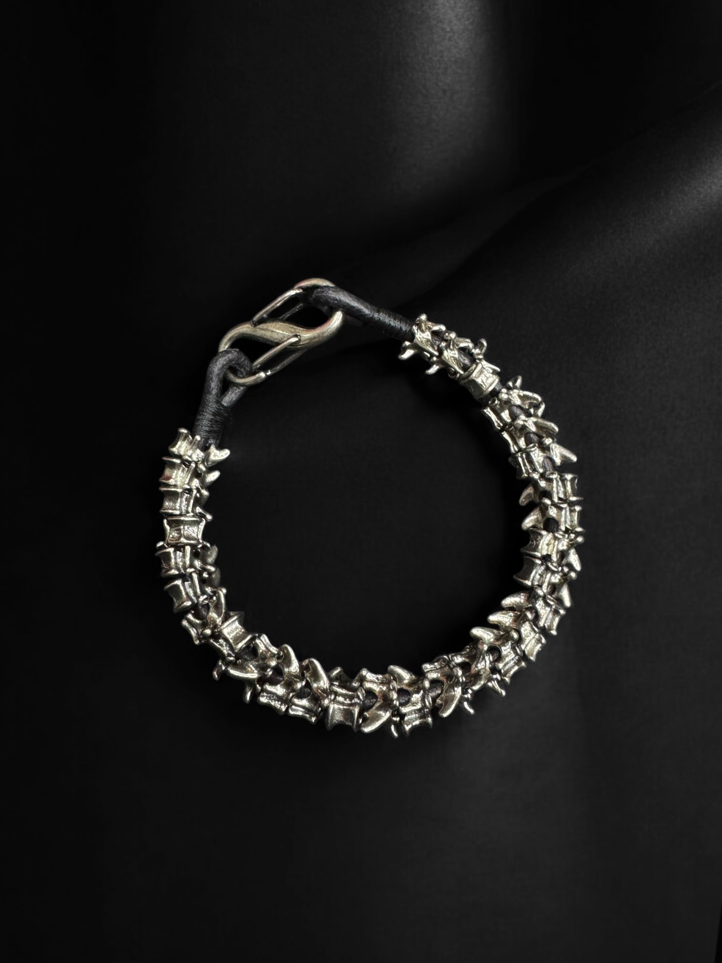 這款 Drake 手鍊,以剛硬的「龍骨」金屬結構,結合柔韌的皮繩編織,打造出剛柔並濟的設計語言。靈感源自龍的堅毅與蛇的靈動,象徵每一位佩戴者在現實中靈活應對,卻內藏鋼鐵意志。
