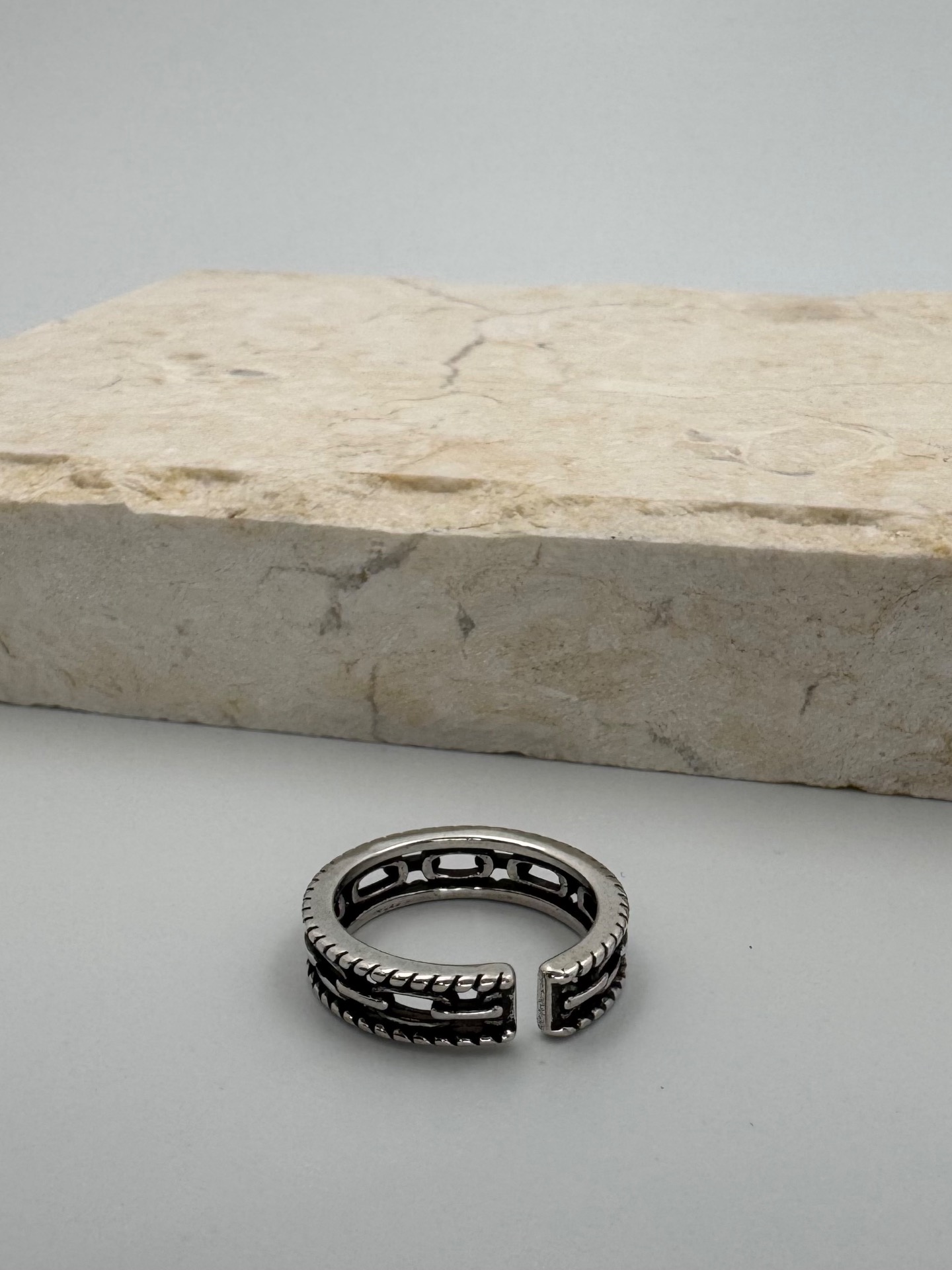 戒身以鏈條造型勾勒穩固之美,蘊含無比的力量——不論風雨,依然昂然前行。